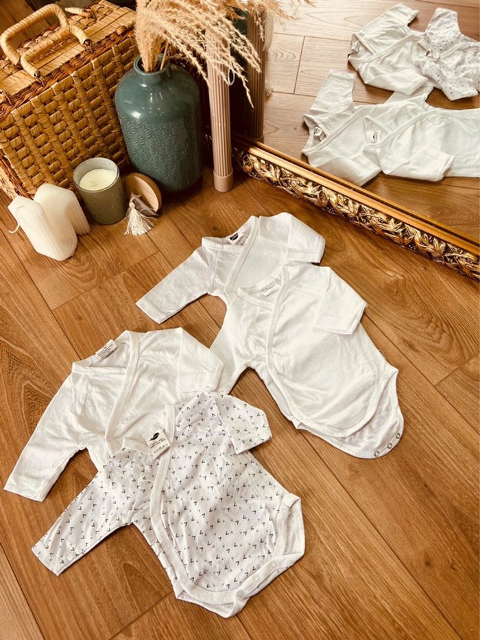 Taille naissance lot de 4 bodies manches longues garçon mots d’enfants blanc 💙 - photo numéro 1