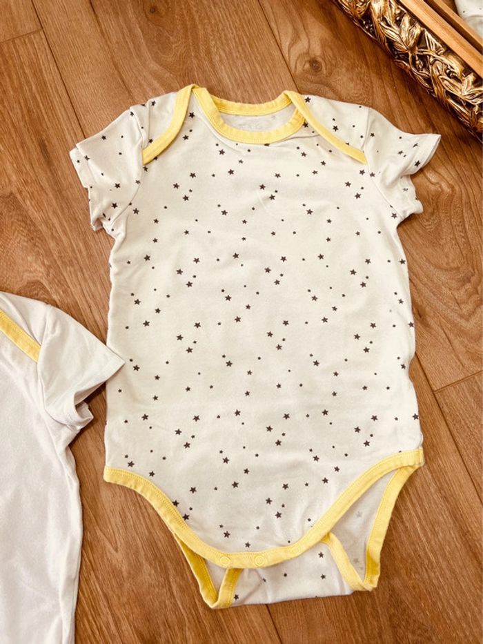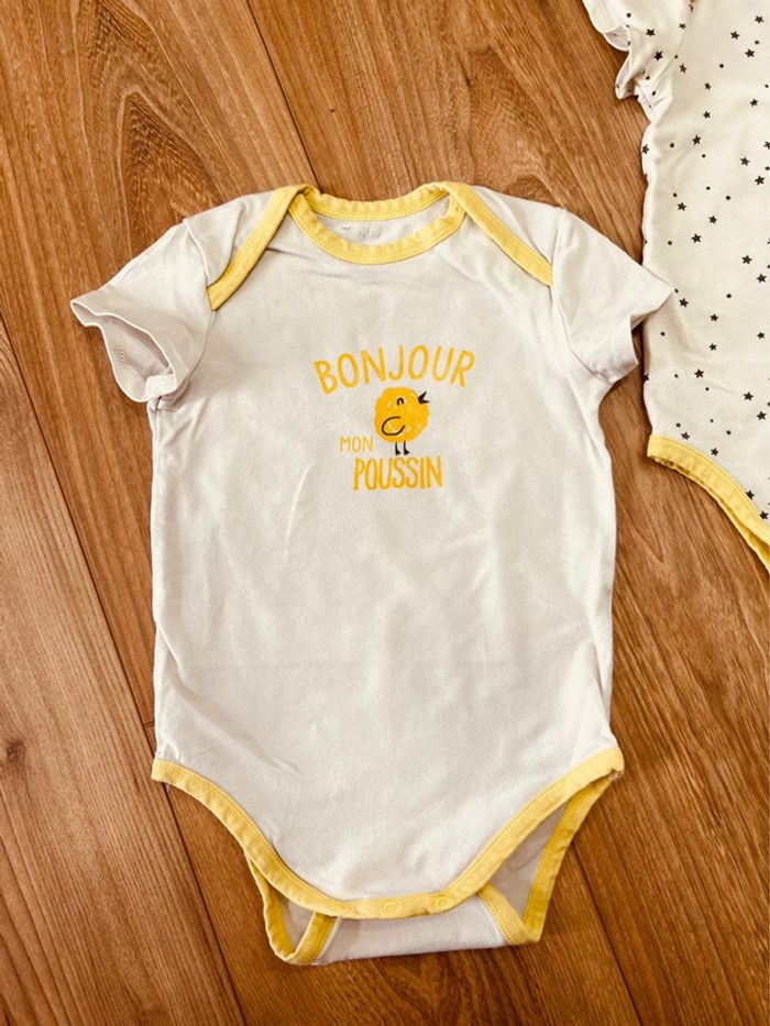 Taille 2 ans lot de 2 bodies manches courtes garçon TAO blanc jaune * poussin * 💙 - photo numéro 1