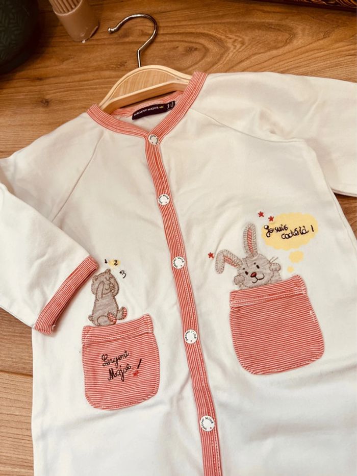Taille 6 mois pyjama fin garçon Sergent Major blanc et corail * lapin * 💙 - photo numéro 3