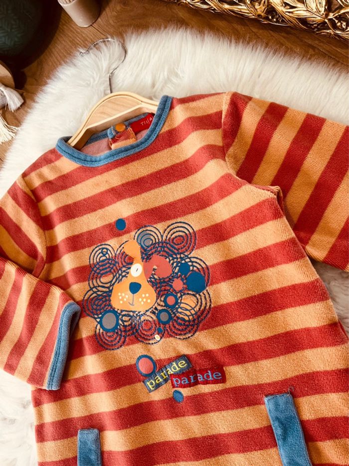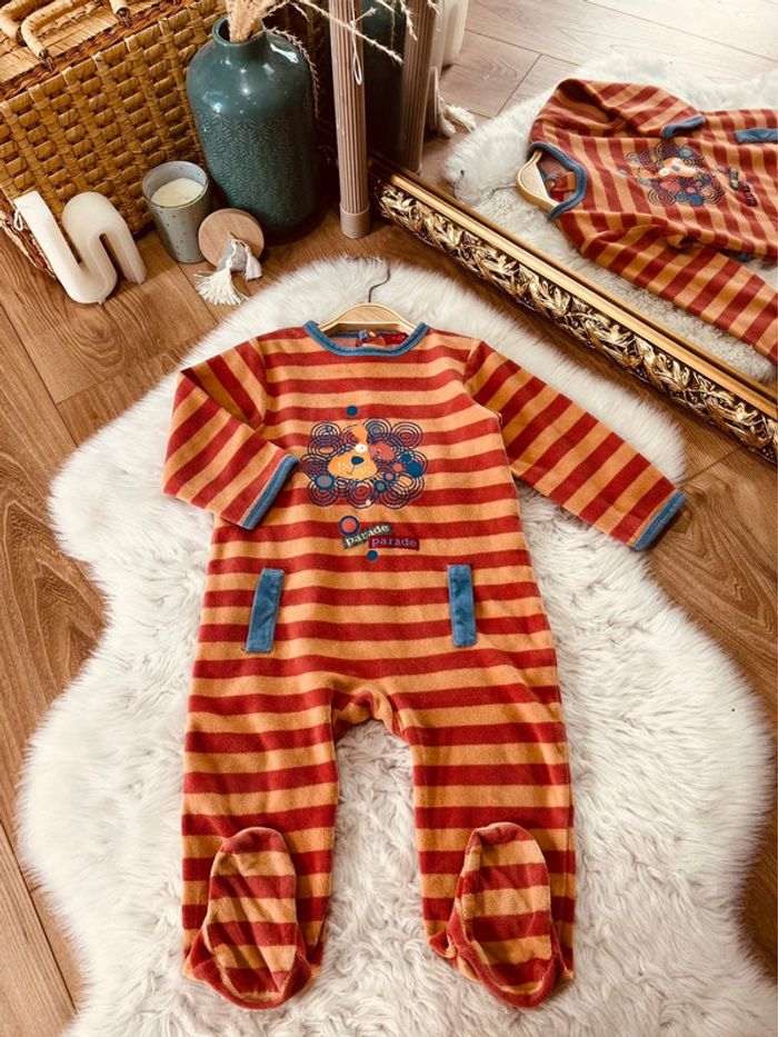 Taille 18 mois pyjama velours garçon Tissaia orange et rouge * rayures* 💙 - photo numéro 1