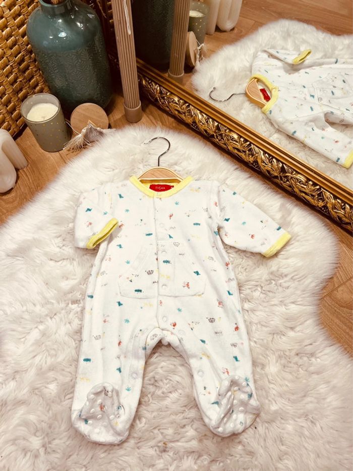 Taille 1 mois pyjama velours garçon Tissaia blanc et jaune * motifs * 💙 - photo numéro 1