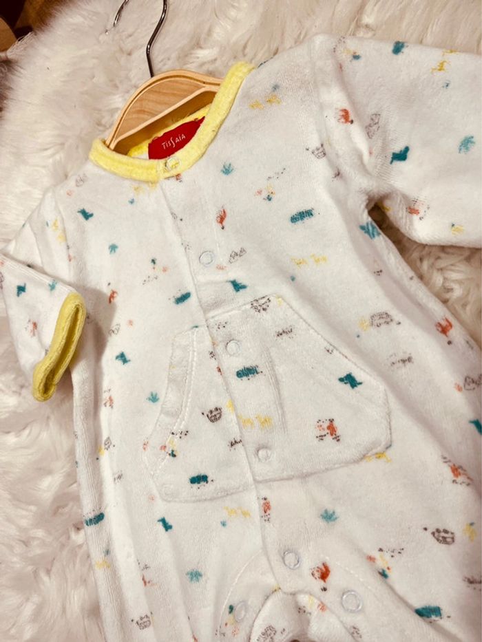 Taille 1 mois pyjama velours garçon Tissaia blanc et jaune * motifs * 💙 - photo numéro 2