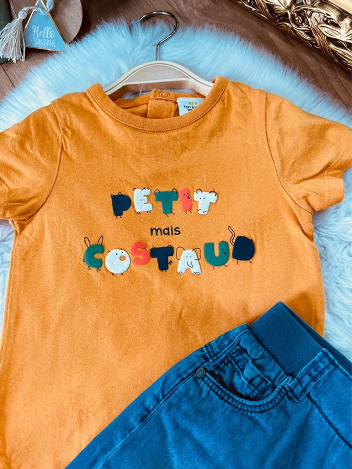 Taille 18 mois ensemble d’été 2 pièces garçon TAO orange et bleu * costaud * 💙 - photo numéro 2