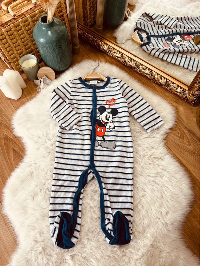Taille 9 mois pyjama velours garçon Disney bleu et blanc * Mickey * 💙 - photo numéro 1