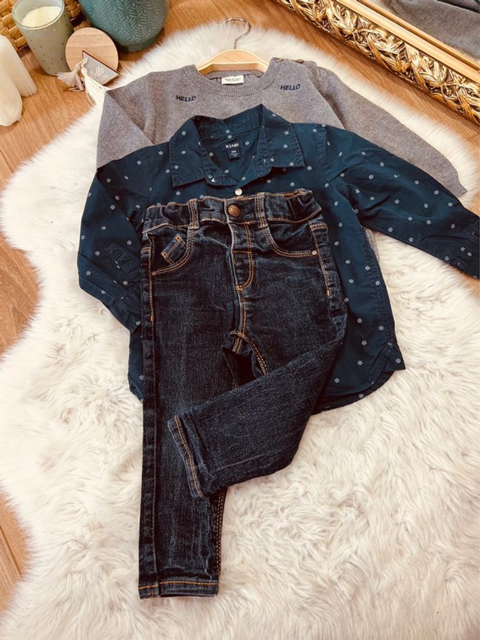 En excellent état #garçon18moisharmoniedenys Chemise + pull + jean slim