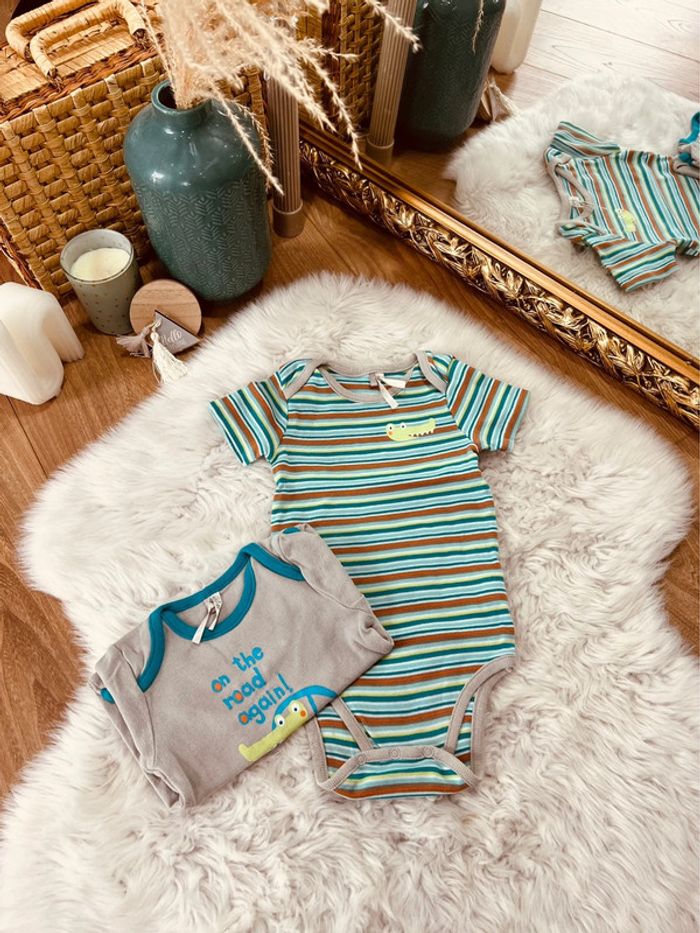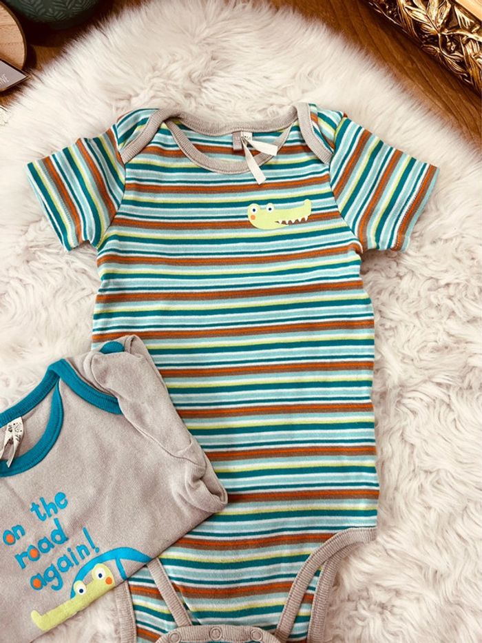 Taille 18 mois lot 2 bodies manches courtes garçon Orchestra bleu gris * crocodile * 💙 - photo numéro 2