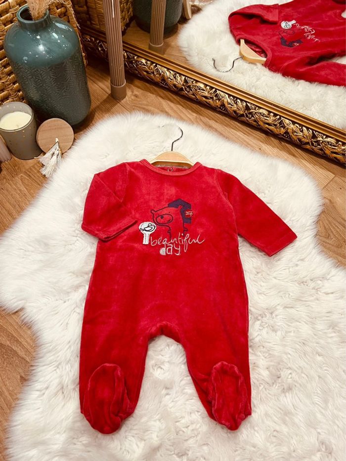 Taille 3 mois pyjama velours garçon Sucre d’Orge rouge * ours * 💙 - photo numéro 1