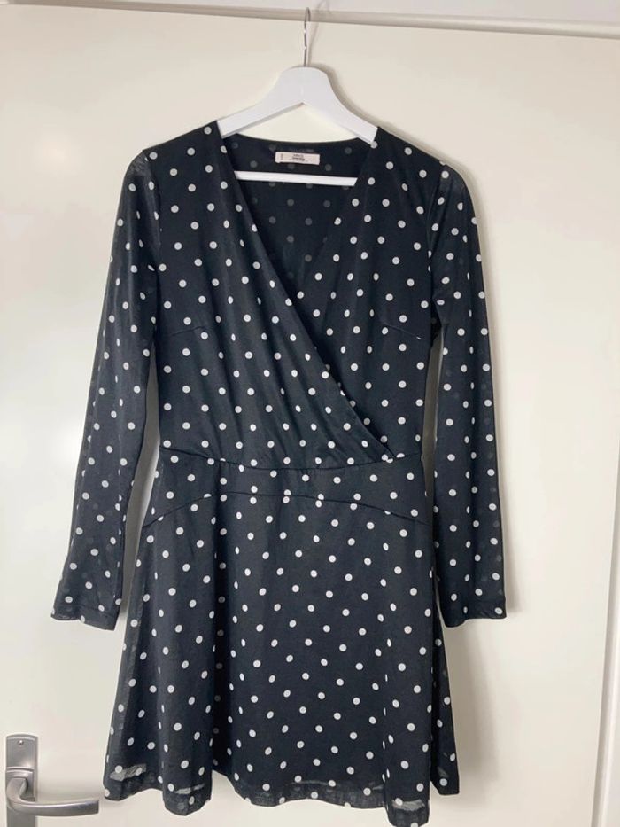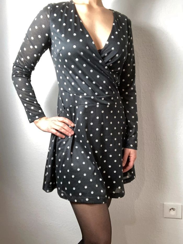 jolie robe taille S (36-38) mango noir avec motif pois blancs col v idéal pour mi saison , légère et très confort. pour moi elle est trop courte ( je mesure1,70) #meli31femme36 #meli31femme38 #robeautomne #robenoirmango #robemango36 #robemango38 #robenoirapoisblanc