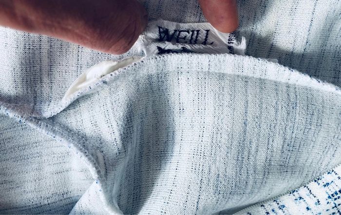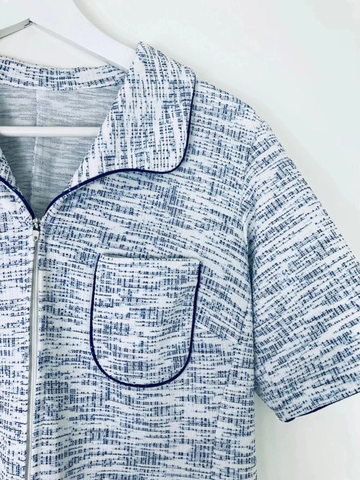 robe vintage - weil - fabrique en France bleu et blanc col V fermeture éclair mesure prise à plat : - epaule : 38 cm - taille : 43 cm - longueur :97 cm -longueur de la fermeture éclair : 37 cm très bon état Retrouver mes articles triés par taille : #meli31femme38 #weillparis #robeweillvintage #weilvintage #robevintage #tabliervintagefemme #blousevintage