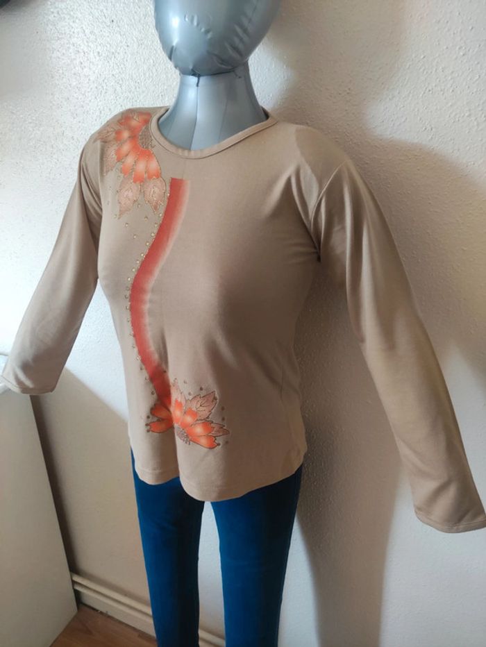 T-shirt femme manche longue Col rond à motifs imprimés très bon état