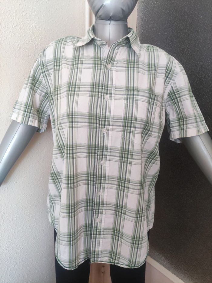 Chemise homme à carreaux manches courtes avec 1 poche sur la poitrine épaule à épaule 46 cm aisselle à aisselle 59 cm longueur totale 72 cm 100% coton très bon état
