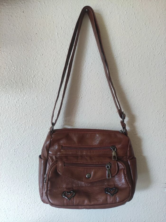 Sac à bandoulière rétro aux multiples poches,sac porté à l'épaule en faux cuir doux,sac à main pour femmes aux motif coeur