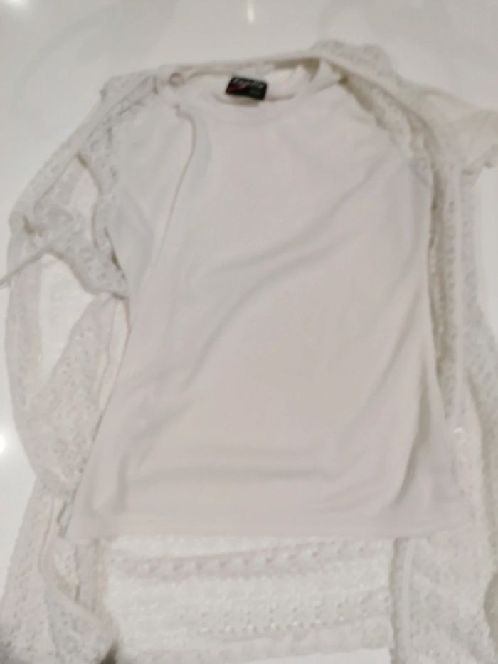 Haut manches courtes Taille 36 38 environ. Pas d étiquette Haut cousu avec son gilet ajouré Angella paris
