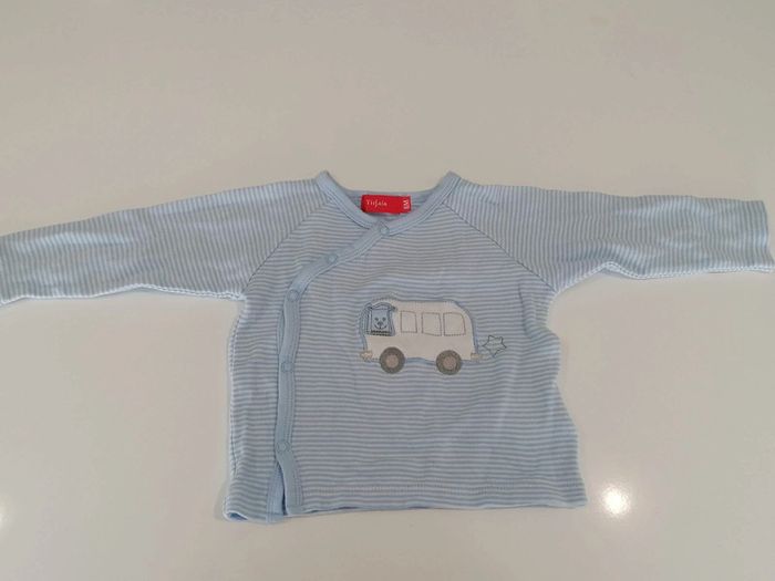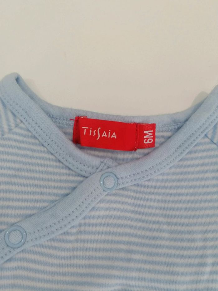 Petit haut manches longues Taille 6 mois Tissaia Bleu rayures blanche Garçon je pense À pressions