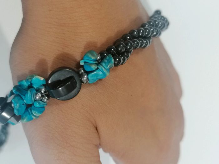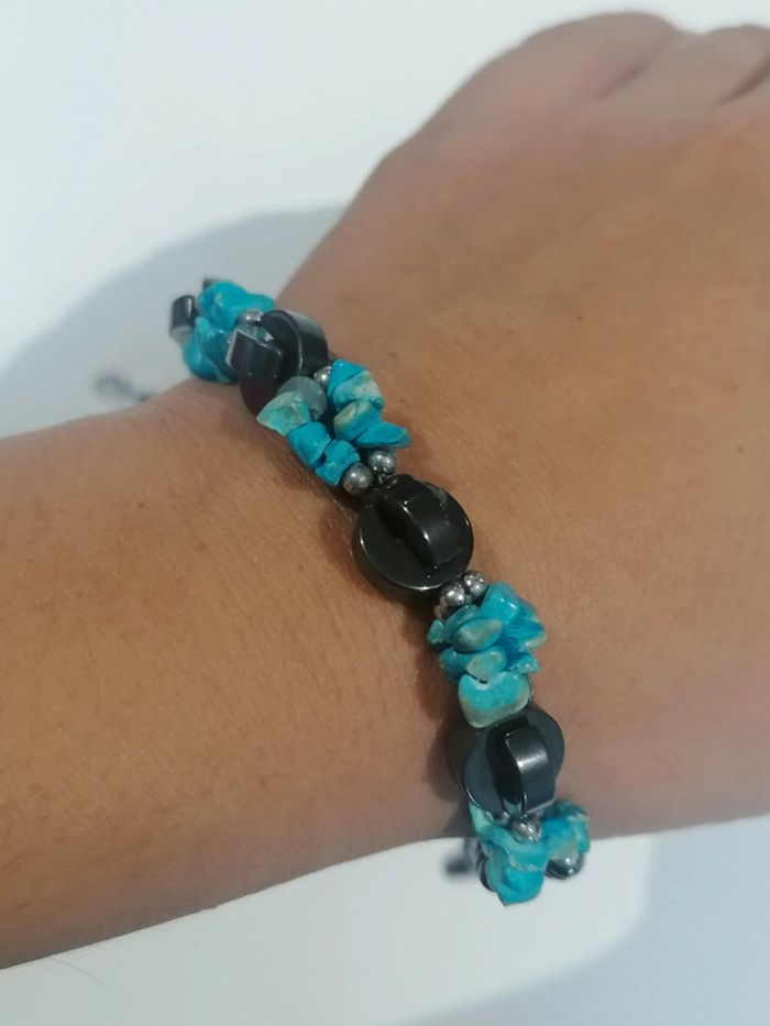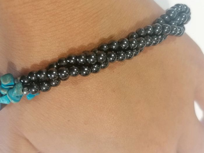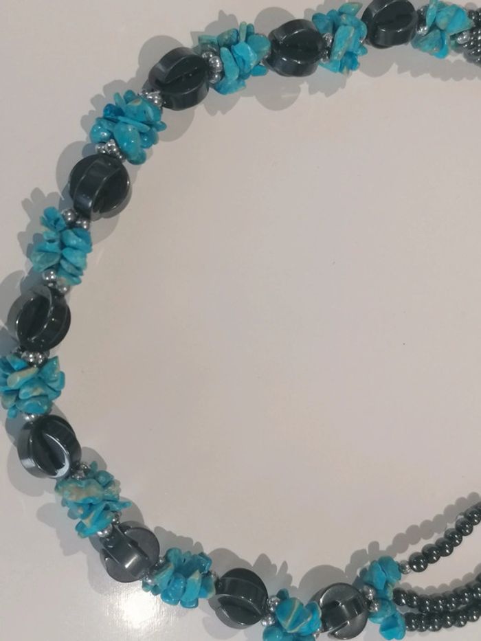 Collier genre pierre Bleu turquoise Gris foncé Peu mis