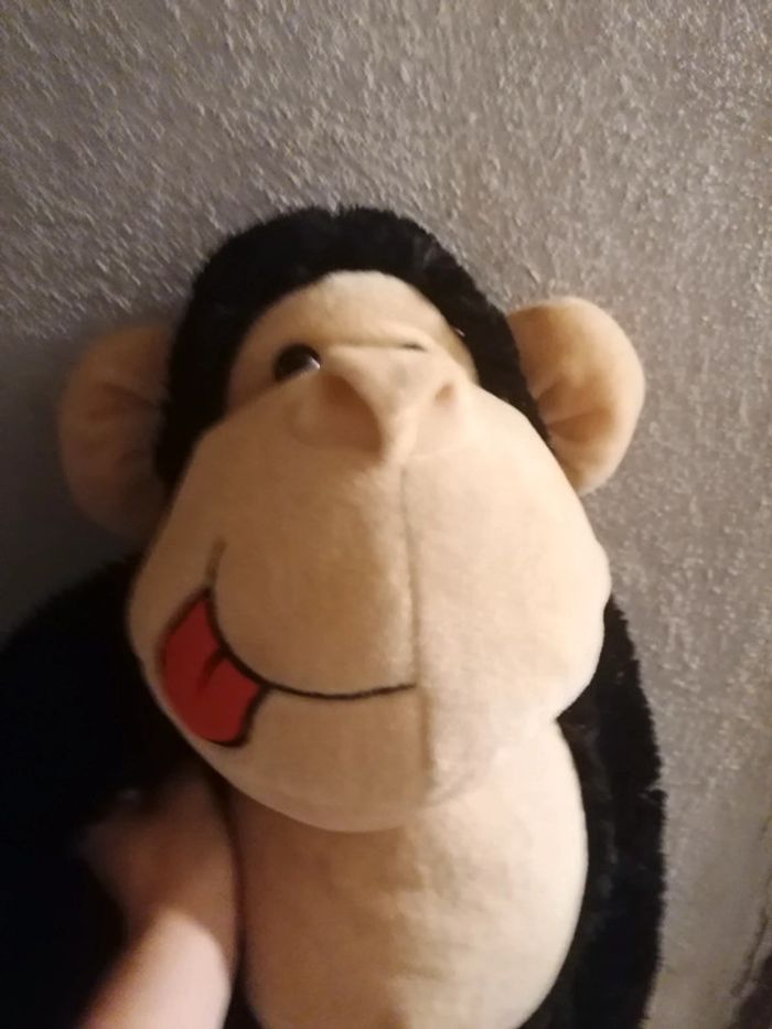 Gros singe peluche Super état Désolé la photo a été prise dans ma cave, mais propre ! Enfin pas abîmé ni tâché Pas moisi Juste vous le laver, parfait