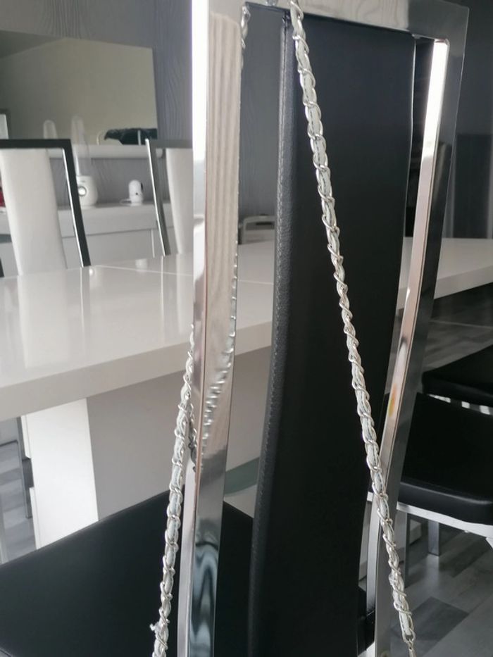Petit sac bandoulière jeans Chaînette Décousu à l intérieur Petite tâche blanche, je ne sais pas quoi peut être genre javel... à l intérieur Fermeture aimanté Dimensions photos