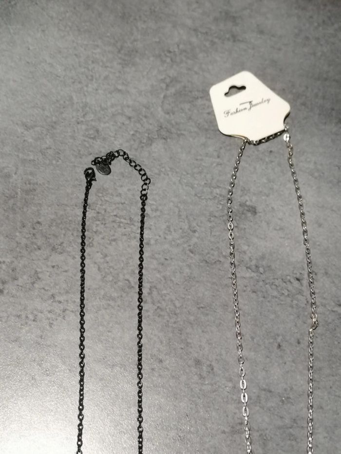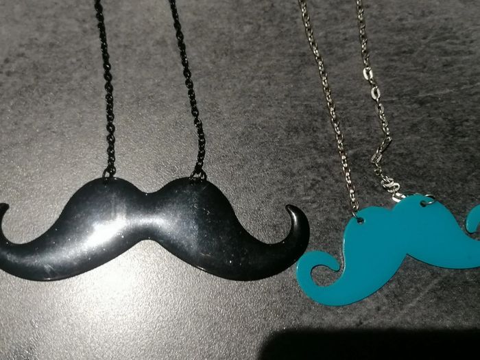 2 colliers Moustache Noir Bleu Jamais mis Idéal jeune fille 👧🏻 Un avec étiquette