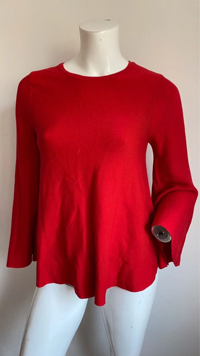 Pull rouge manches larges Mango taille S - photo numéro 3