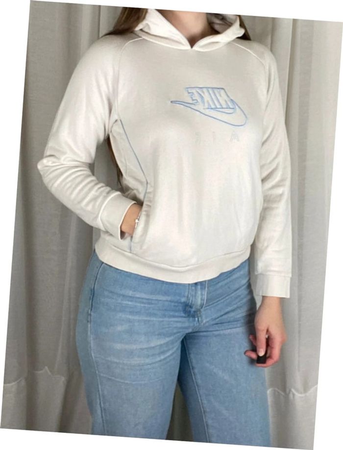 Sweat à capuche blanc logo brodé bleu Taille S femme Marque Nike Excellent etat 📦 Envoi en 48h max ♻️ Reduction sur les lots des 2 articles #sweat #pull #mancheslongues #blanc #white #capuche #nike #taille36 #femme #women #casual #streetwear #sport #y2k #classic #2024