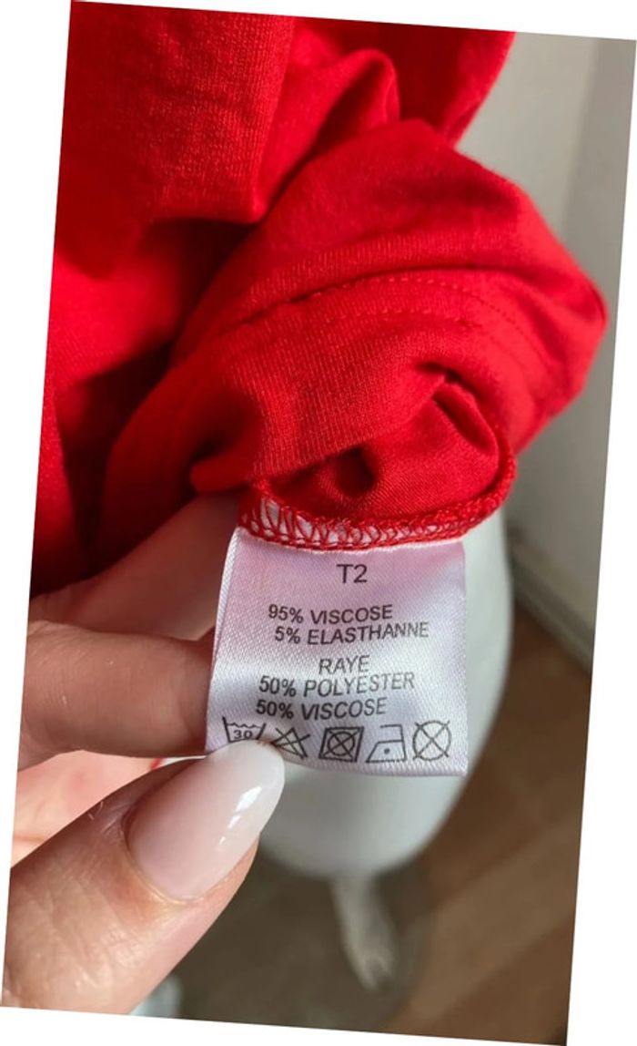 T-shirt rouge marinière Christine Laure taille 2 - photo numéro 2