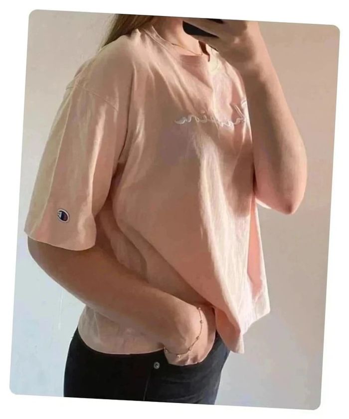 Tres bon état Tshirt de la marque Champion Rose clair Logo brodé sur le devant et sur Le Bras gauche #tshirt #tshirtfemme #champion #championvintage #femme #rose #pink #mujer #women #haut #summer #été #spring #sport #sportswear #teeshirt #logobrodé #brodé #logochampion