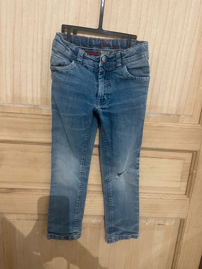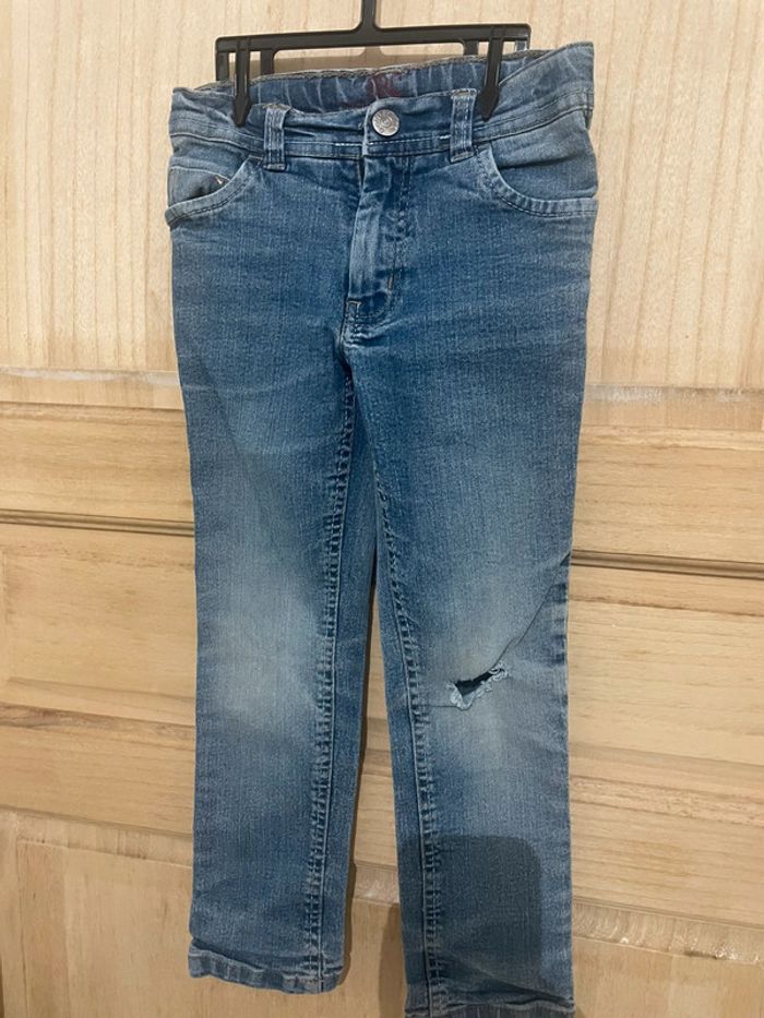 Jeans clair basics avec trou destroy sur une jambe #jennyspears5ans