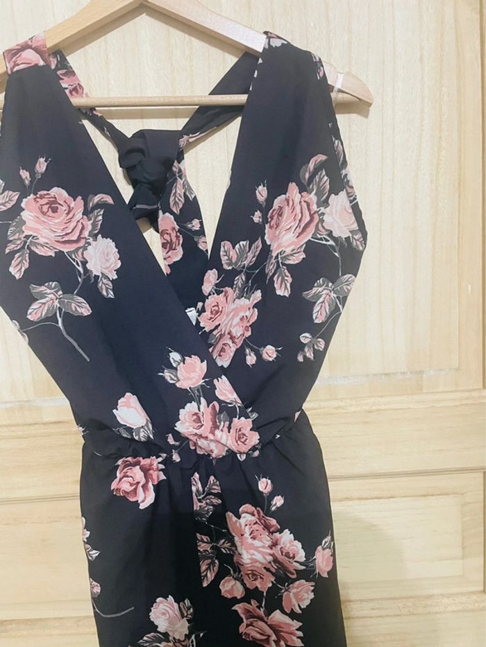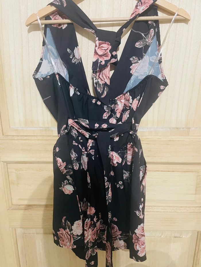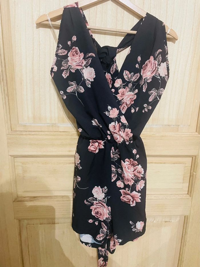 Combinaison short fluide fleurie avec poche dos nu  taille S - photo numéro 1