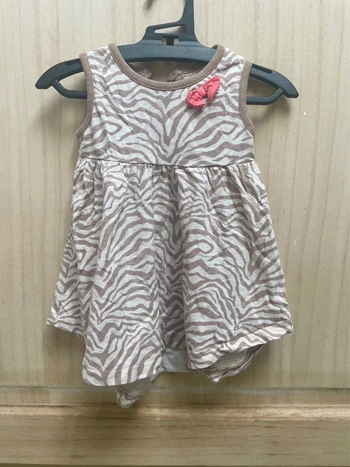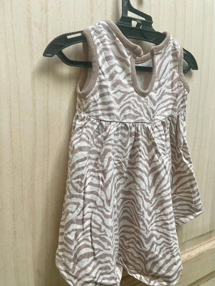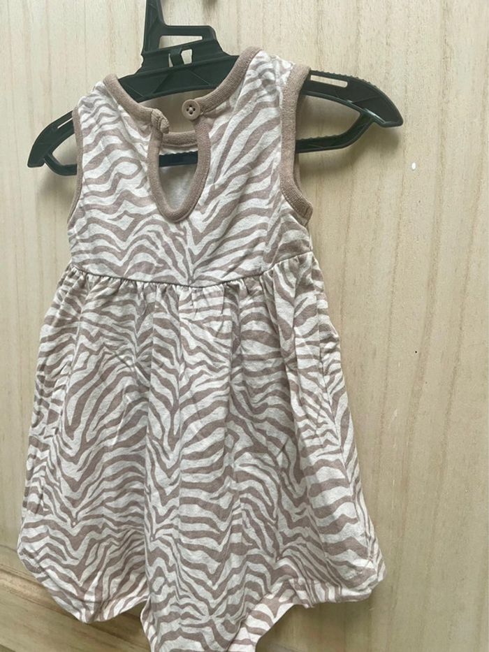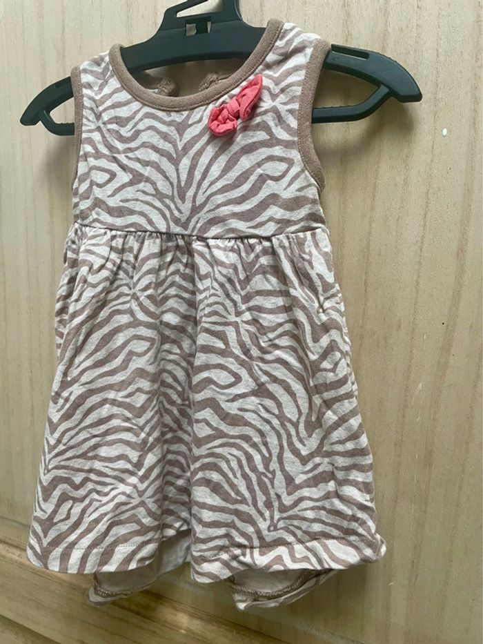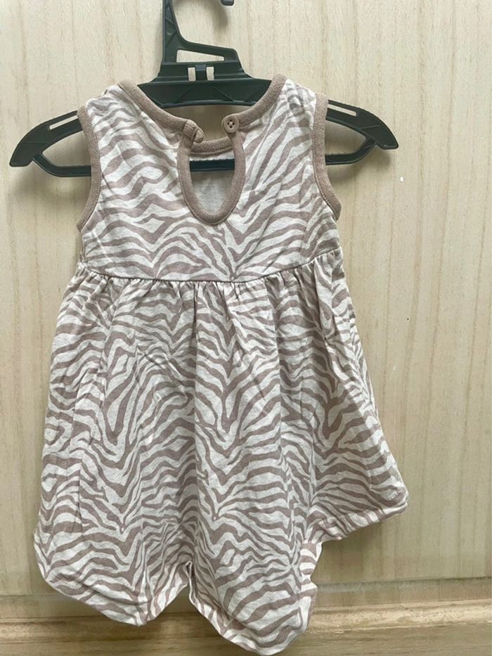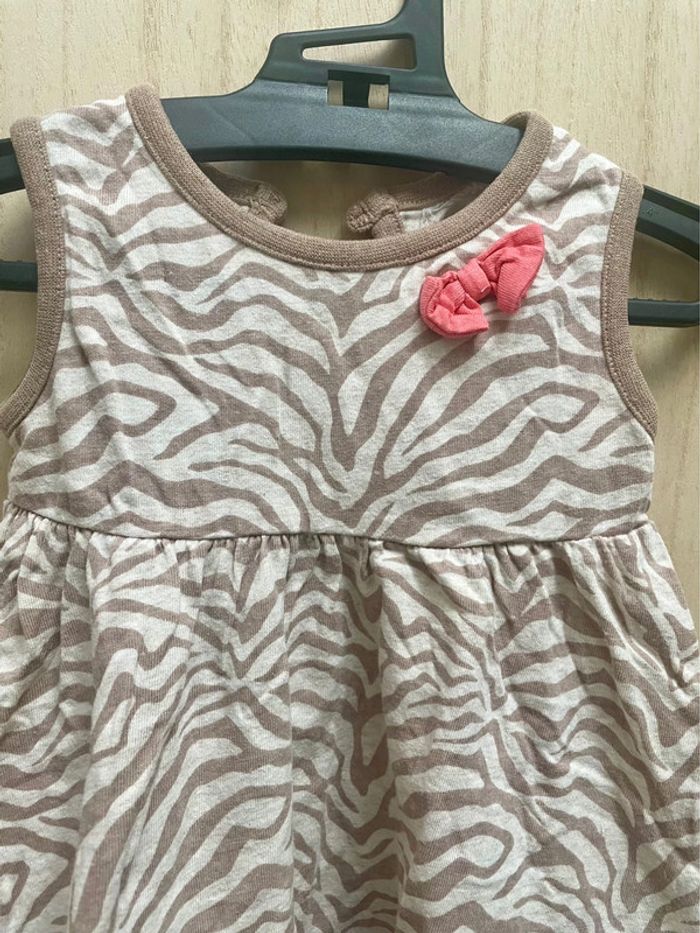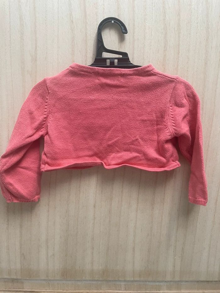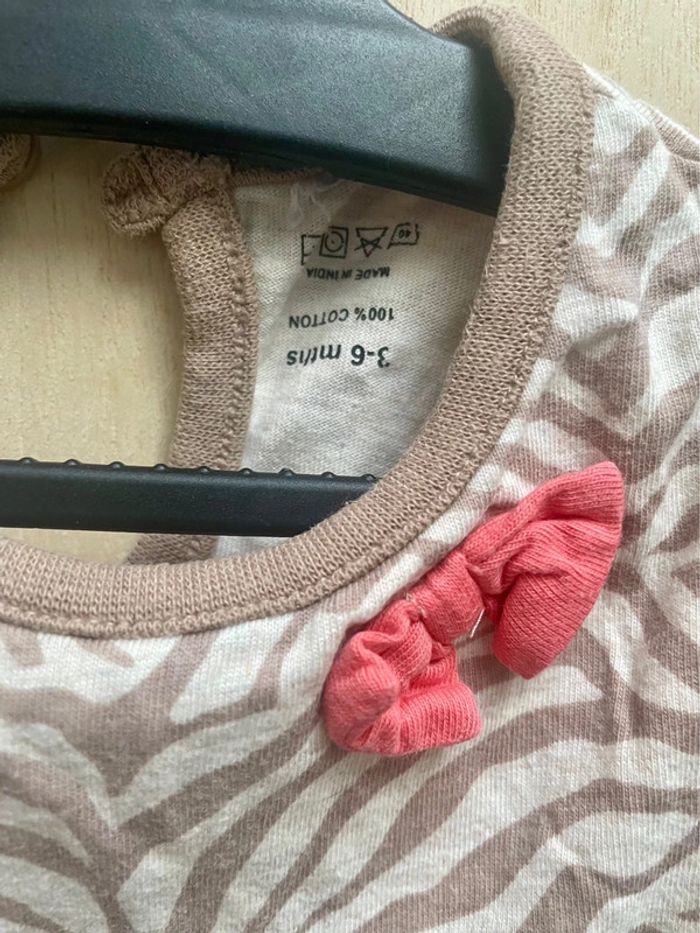 Robe style zébré avec petit noeud rose sur le côté - noté 3/6 mois et je ne sais plus la marque Boléro rose style laine manches longues - 6 mois #jennyspearsbebefille6mois