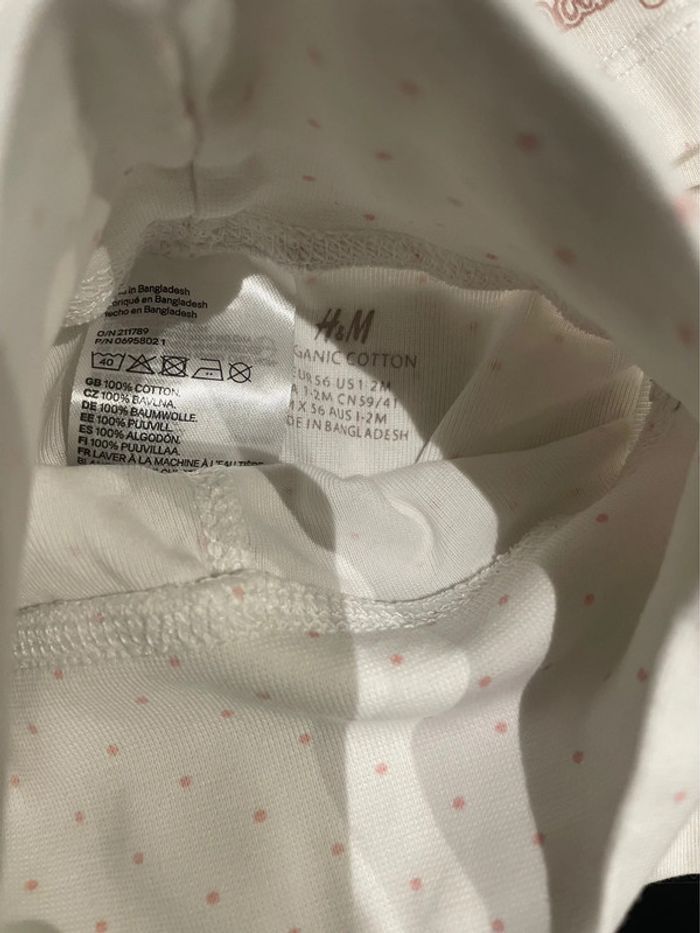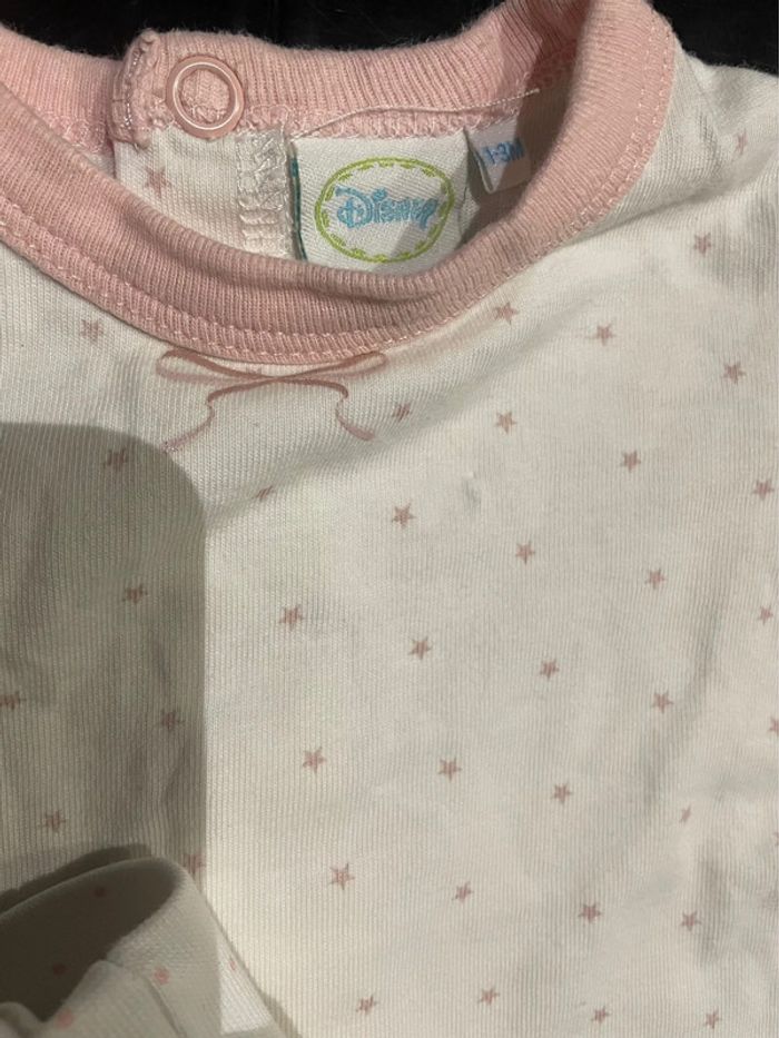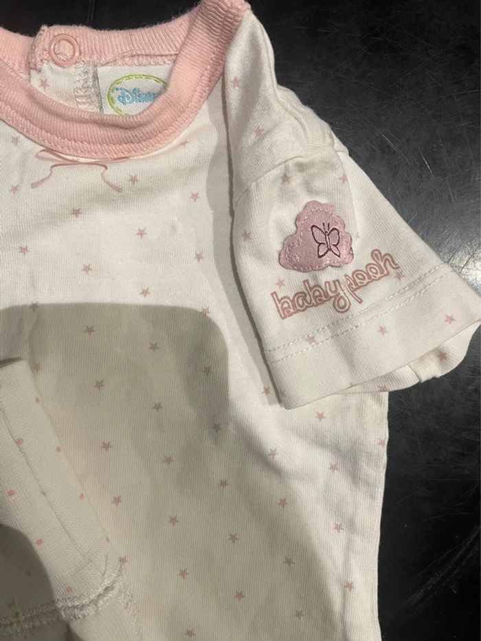 Pyjama coton Haut manches courtes blancs motif étoiles détails rose, baby Pooh Disney baby 1-3 mois Le bas, pantalon avec pieds blanc à pois rose de chez h&m, 1-2 mois Ce n’est pas un ensemble à la base #jennyspearsbebefille1mois #jennyspearsbebefille