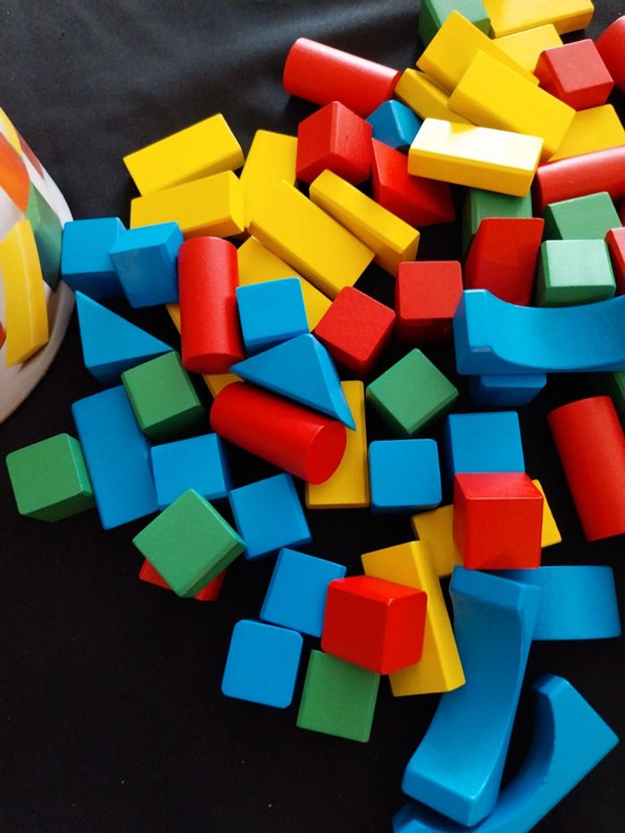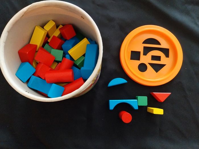 Boite de 100 pièces en bois Couleurs primaires Couvercle tri de forme