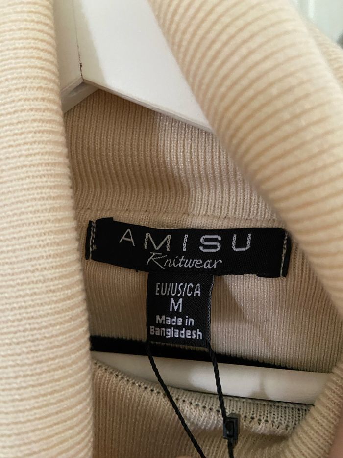 Neuf avec étiquette prix magasin 19.99€ Fente sur chaque côté du pull , matière fine et épaisse à la fois pas du tout transparent