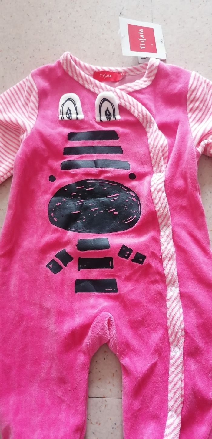 Pyjama en velours rose, taille 3 mois, neuf, pressions devant