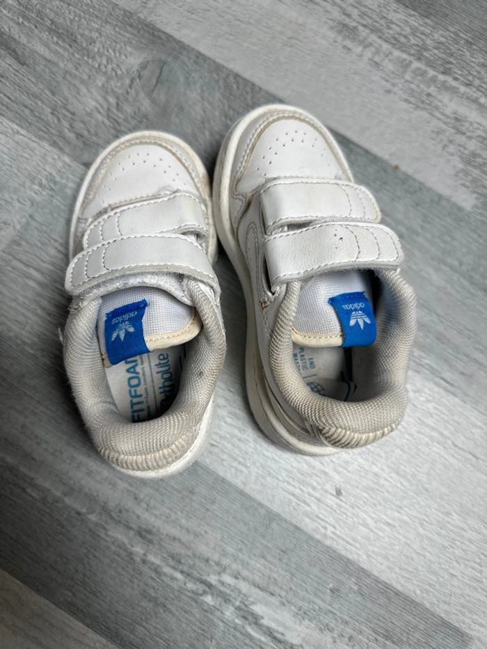 Baskets Adidas blanche et bleu. POINTURE 24. Reste en bon état.