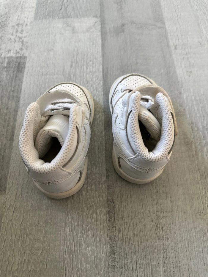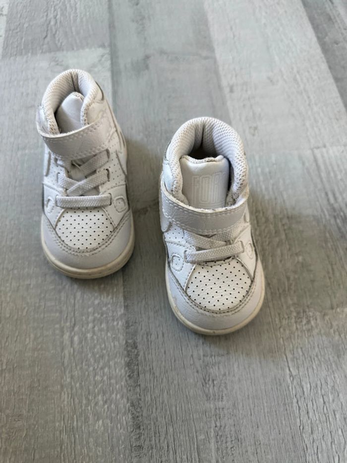 Baskets NIKE blanche enfant. Scratch devant. TAILLE : 18,5.