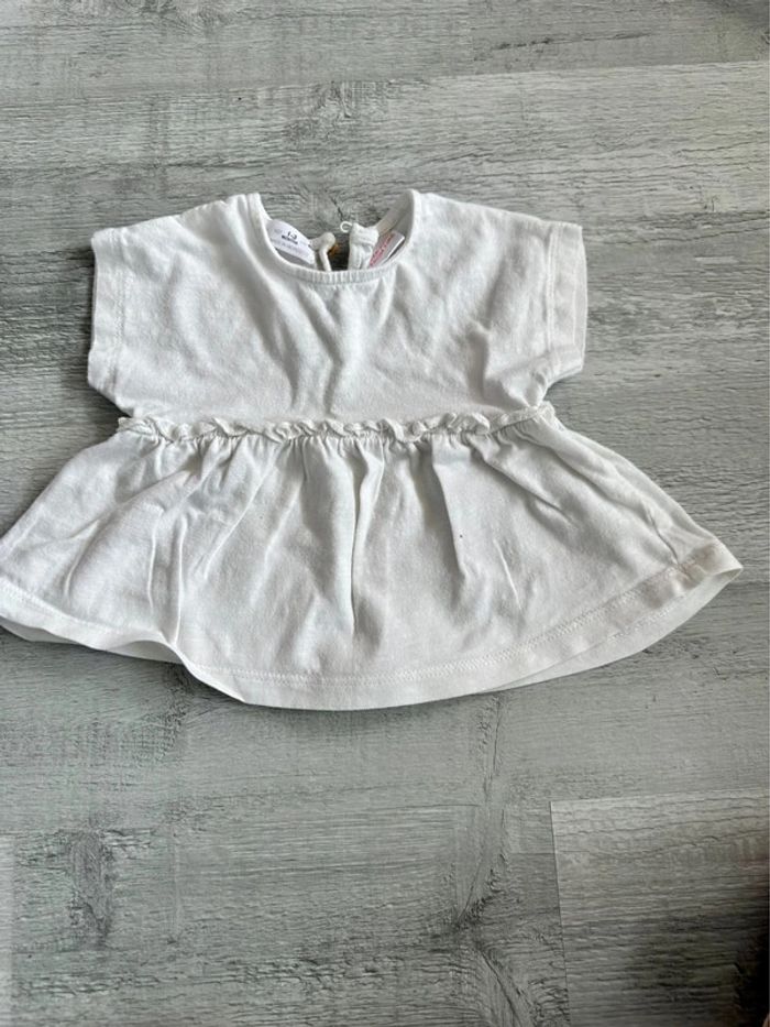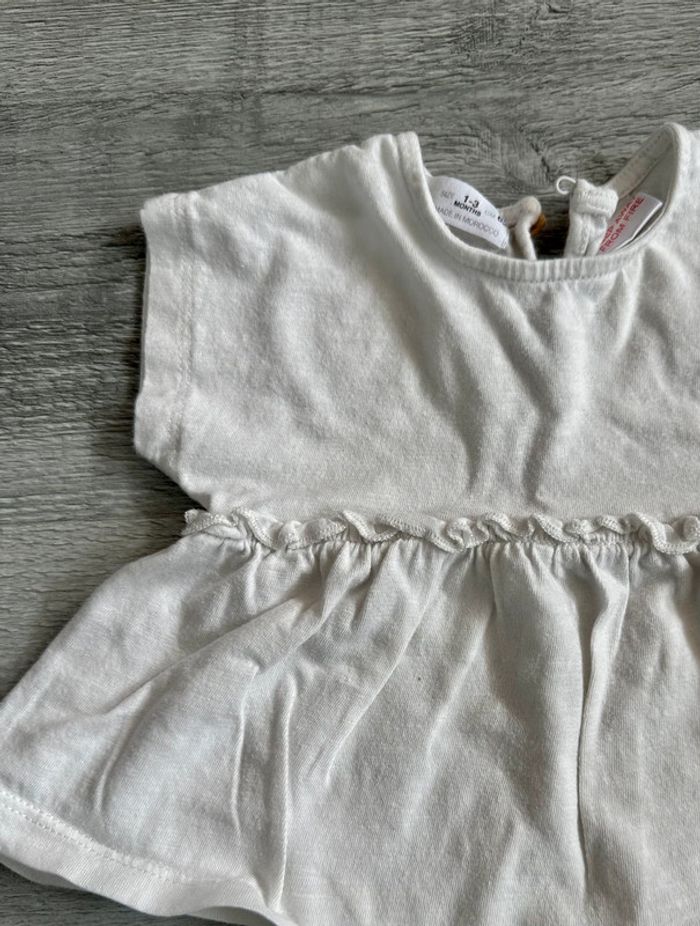 Tee-shirt blanc avec bouton à l’arrière. 1-3 MOIS. ZARA.