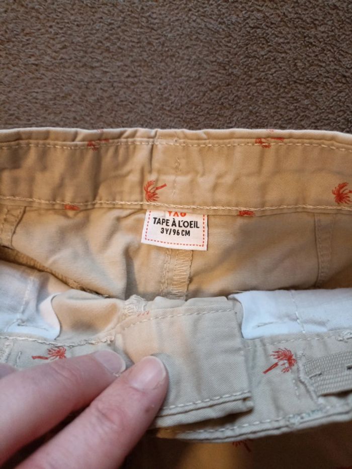 Short beige motif palmier orange, réglable à la taille. Très légèrement taché aux fesses (photo 3)