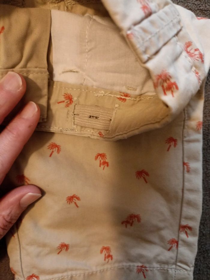 Short beige motif palmier orange, réglable à la taille. Très légèrement taché aux fesses (photo 3)