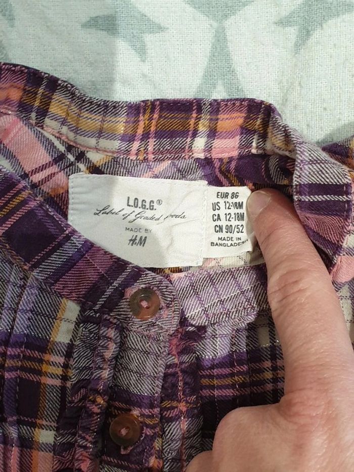 Haut manches longues effet chemise rayée, taille 18 mois. Très bon état.
