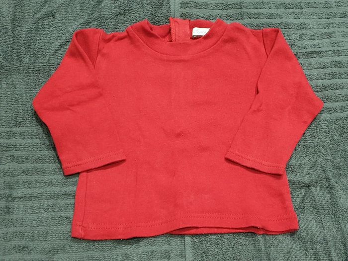 Haut manches longues rouge, taille 12 mois. Très bon état.