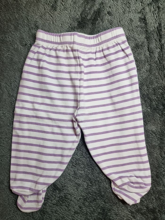 Pantalon de pyjama taille 6mois Blanc rayé violet Avec pied