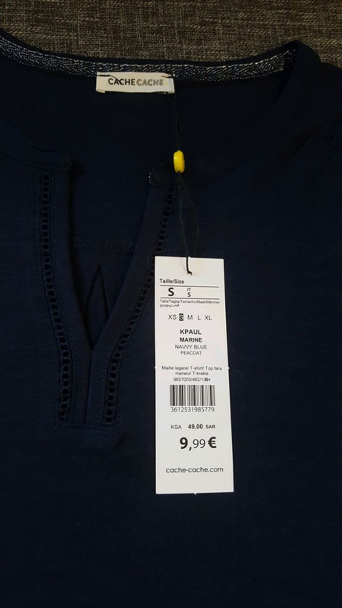 Tee shirt bleu marine, taille S. Neuf avec étiquette.