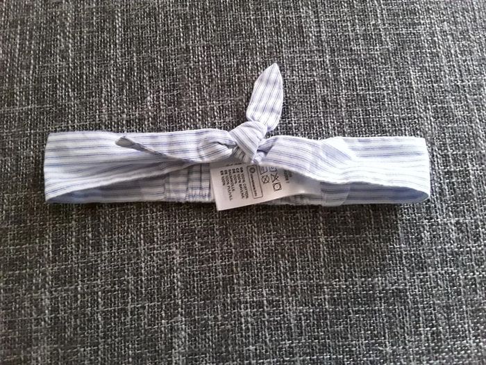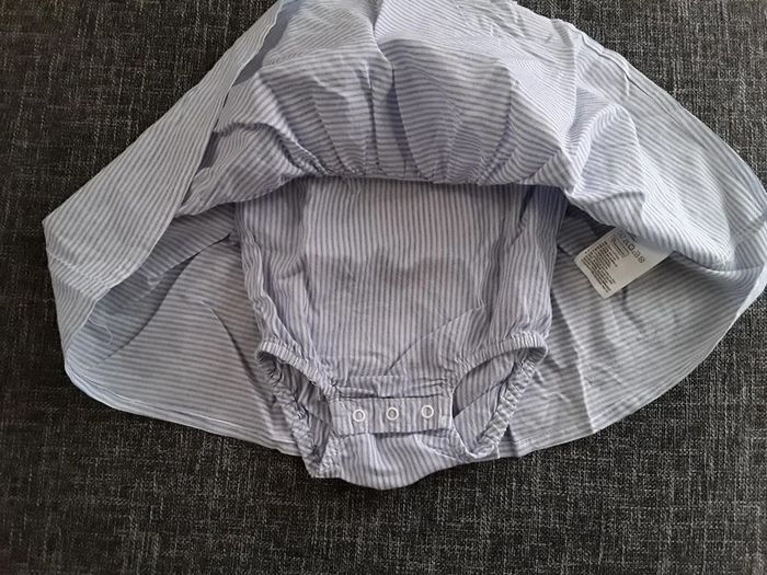 Belle robe rayée bleu et blanc avec bodie intégré et son bandeau assorti à la robe. Très bon état.