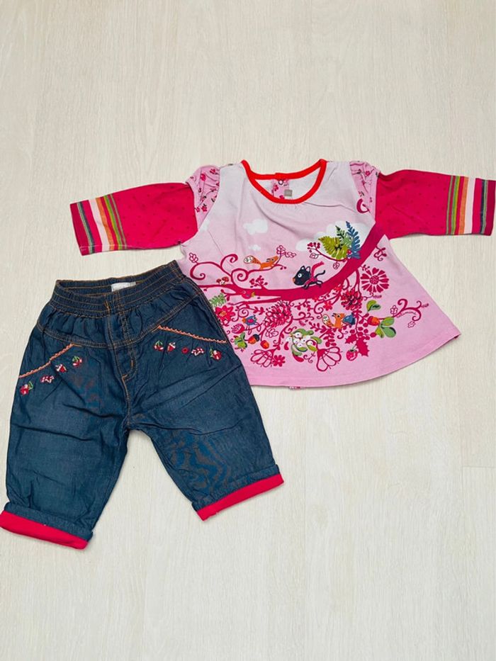 Pantalons style jeans Chemisier manches longues, boutons pressions derrière 6 mois /68cm très bon état