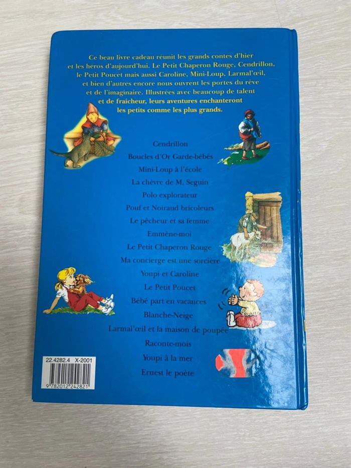Gros livre regroupant 18 histoires dont cendrillon, boucle d’or, le petit chaperon rouge… 318 pages