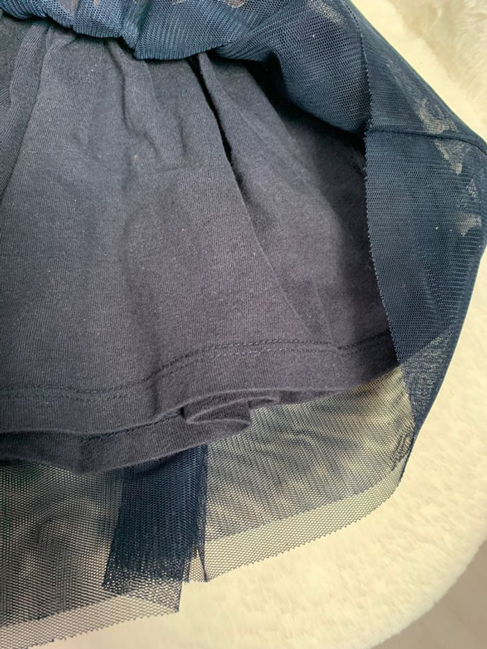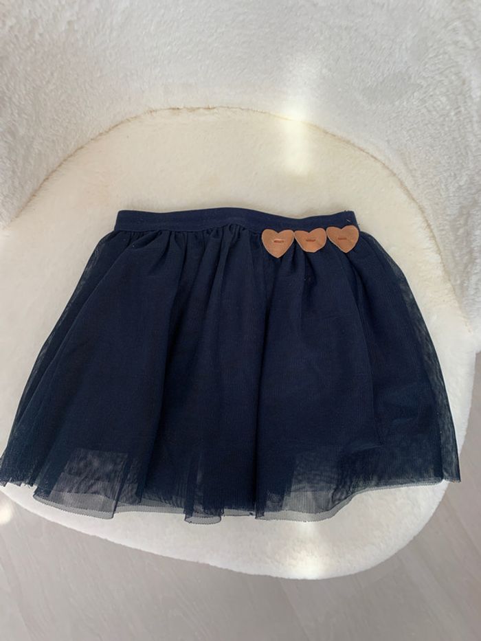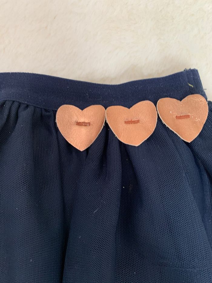 jupe kiabi bleu marine avec 3 cœurs dorés doublure coton + 2 tules