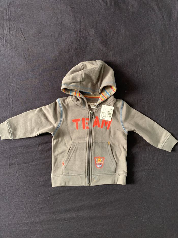 gilet garçon neuf avec étiquette gris 2 poches capuche