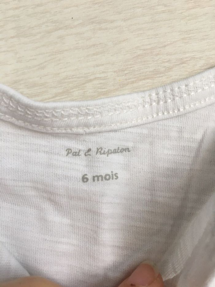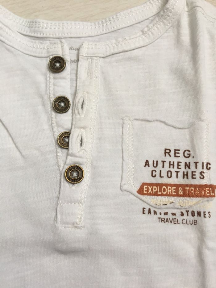 t-shirt blanc à manches longues 4 boutons devant et 1 poche 6 mois