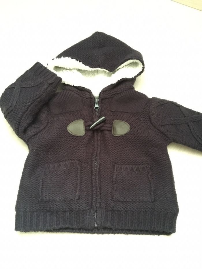 gilet très chaud, très épais 6 mois valeur neuve : 20€ quelques bouloches bleu très foncé