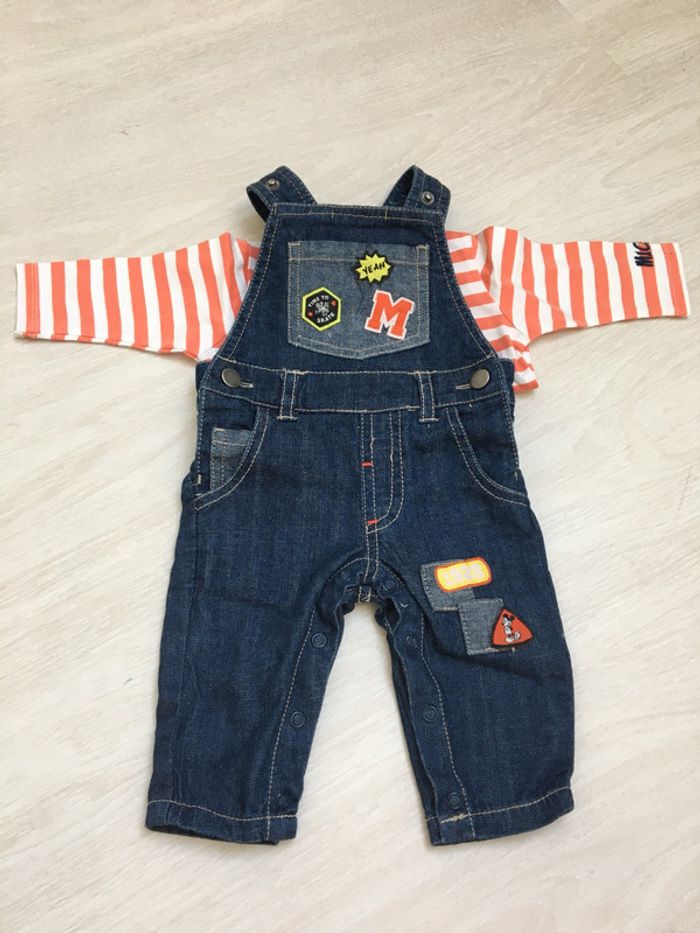 Salopette jeans Mickey avec t-shirt 3 mois Porté 2 fois, pas de taches